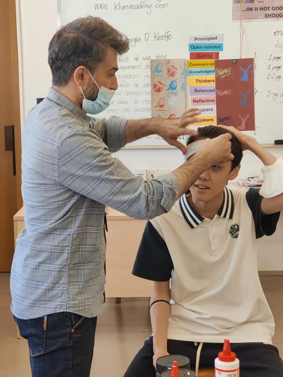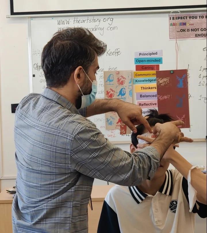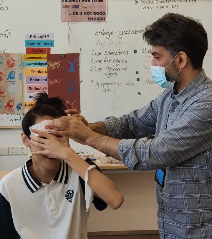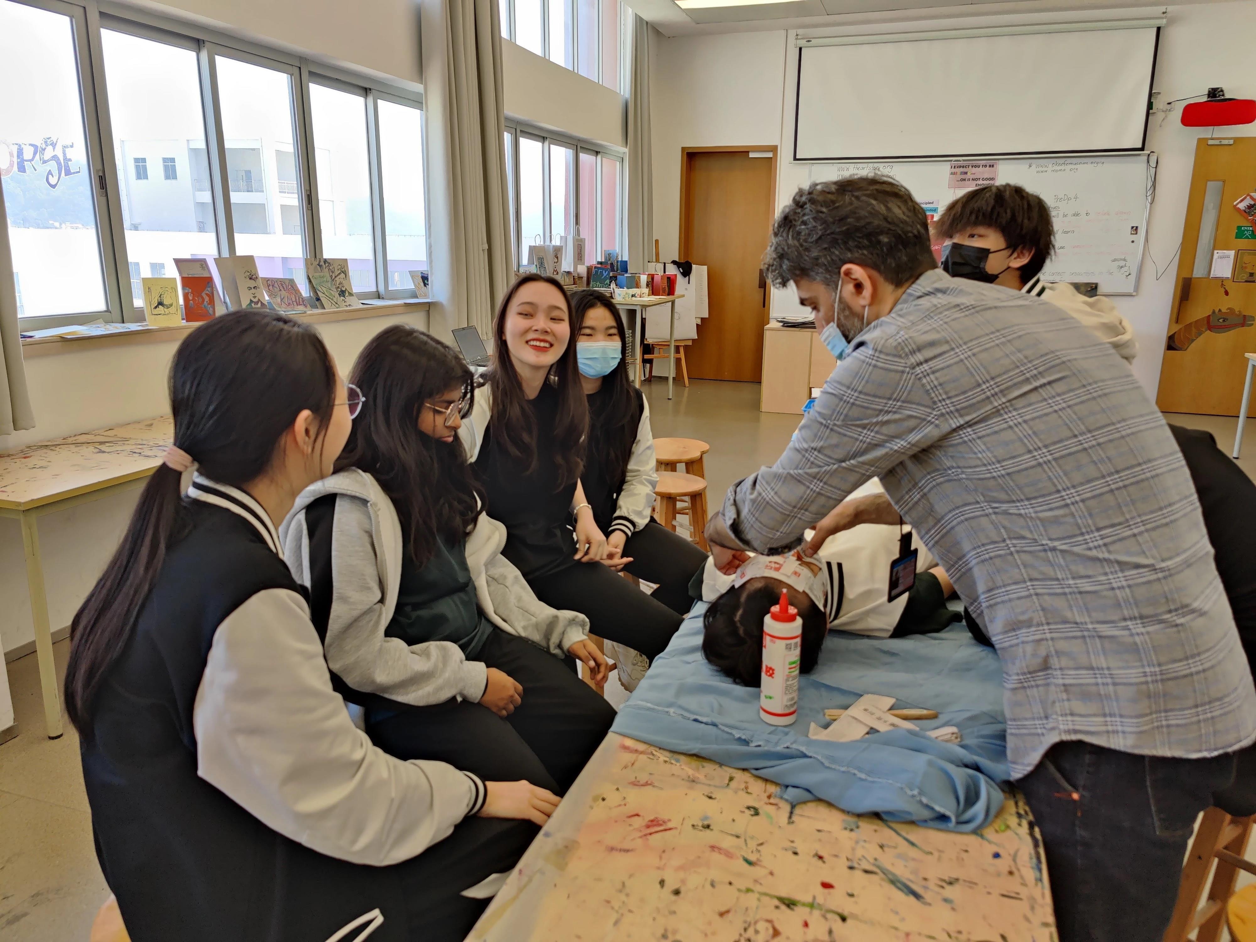 AIC的驻场艺术家 Mahdi 非常乐意提供帮助,并开设了一个面具制作工作坊,指导学生们用纸和胶水制作面具。