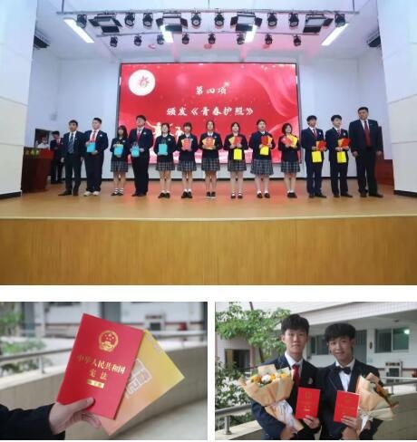 最后,广东实验中学越秀学校国际部为学生送上珍贵的青春护照。 《中华人民共和国宪法》读本与青春护照给学生代表。每一位高三学子都将有这一份特殊而珍贵的礼物,希望每一位同学能详细研读,应当懂得祖国的尊严和荣辱、国家的法律和制度、公民的权利和义务等等。