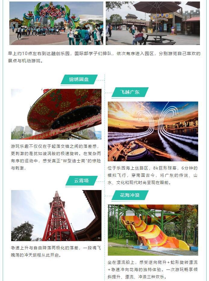 最是一年春好处,怎能让孩子们错过这美丽春景呢!孩子们心心念念的春游活动应运而生,广东实验中学越秀学校国际部组织同学们,来到花都融创乐园,让孩子们尽情感受青春的气息,感受春天带来的生机勃勃。