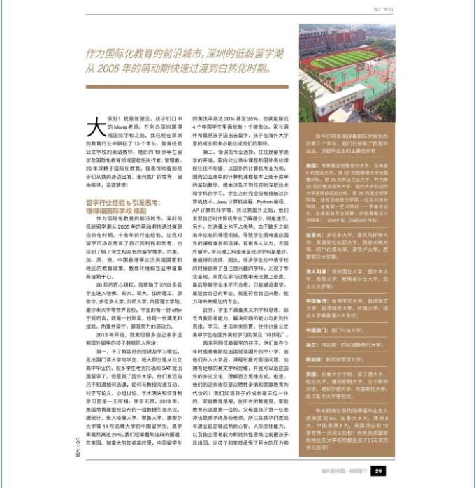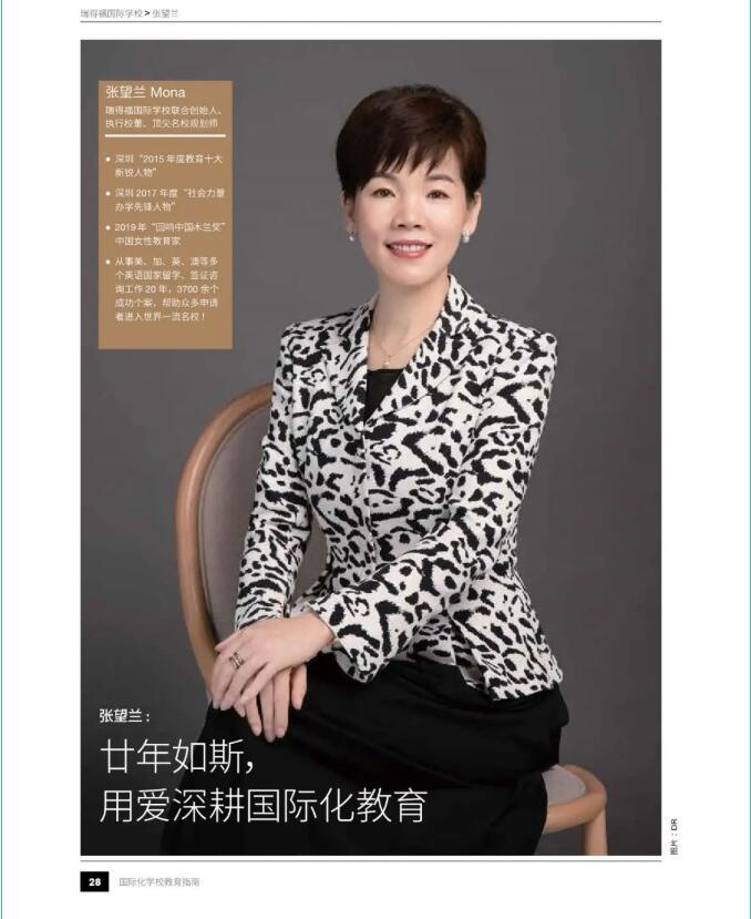 祝贺瑞得福国际学校执行校董Mona张望兰成为《2022福布斯中国·国际化学校教育指南》杂志人物!