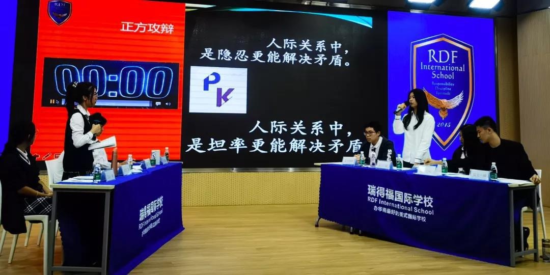 深圳瑞得福国际学校本场辩论决赛的主题是:人际关系中是隐忍还是坦率更能解决矛盾?