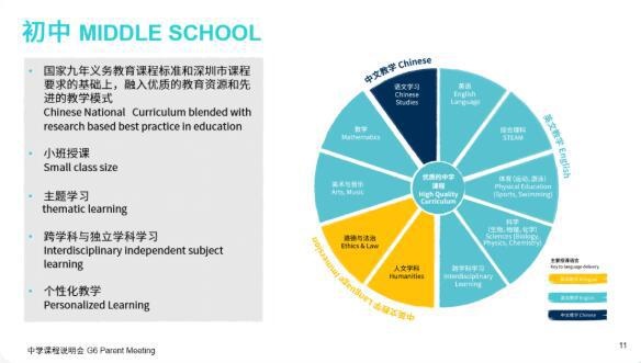 初中课程将在国家课程的基础上,采用跨学科的主题学习方法来培养学生的全面探究性学习能力。我们的英语授课语言比例将提升至70%,通过开展校内外活动、学科竞赛等,培养学生们的自我意识、人际沟通能力和协作能力,为登上更大的平台做好准备。