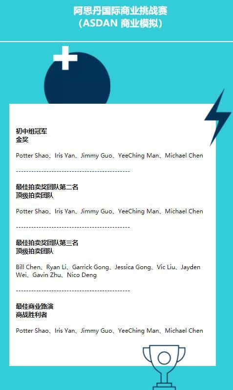 本次ASDAN模拟商战·华南区域战于2021年12月18日-19日在深圳曼彻斯通城堡学校举办,吸引了深圳20所不同学校共229名初中及高中学生参与,最终20支队伍伽,成功晋级2022ASDAN全明星商战。诺德达双语学校包揽了安托队的重要电影,成为全场焦点中组冠军的明星战,包括初选冠军队、拍卖奖队第二名及第三名,以及商业路演奖。