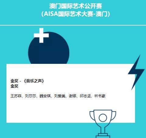 澳门国际艺术公开赛由中国文化大学中国音乐学系和亚洲青年音乐家协会联合主办,今年已经是第八届。校我取得了团体奖金奖,6个银奖,9个铜奖个的佳绩!其中学校出品的音乐剧《音乐之声》参赛作品获得了广泛好评,并一举斩获了全场唯一一个金奖!