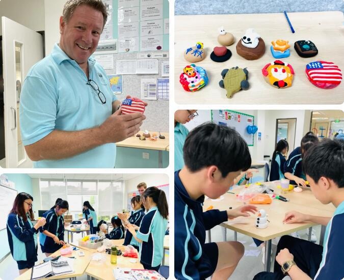 有别于传统月饼样式,我们鼓励孩子们发挥想象力,用软陶泥做一款自己心目中最喜欢的月饼。于是“小王子玫瑰星球月饼”、“芝麻街月饼”、“迷彩AJ风月饼”、“雪人冰皮月饼”等创意十足的月饼“出炉啦”,孩子们还借助这次机会积极分享了自己对文化融合的想法。