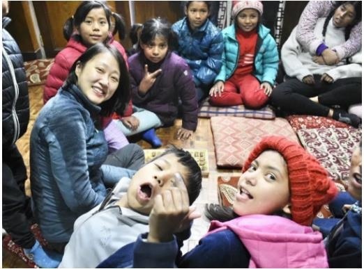 这个男孩的母亲就是今年上任诺德安达教育集团中国双语区教育总监的陈杰妮女士。她资助尼泊尔当地公益项目已经很多年,那年是次带着儿子共同参与,母子俩给正在等待灾后重建的全校孩子带来了校服、书包、文具和生活用品。此后每一年的圣诞假,母子俩都会去往尼泊尔当地通过徒步的形式募捐,直接参与加德满都一所孤儿院的互助项目。每次徒步归来,母子俩都会到孤儿院完成捐赠手续,和孩子们一起庆祝元旦,并与他们共进新年晚餐。对这些孩子们来说,这是最重要的新年仪式。