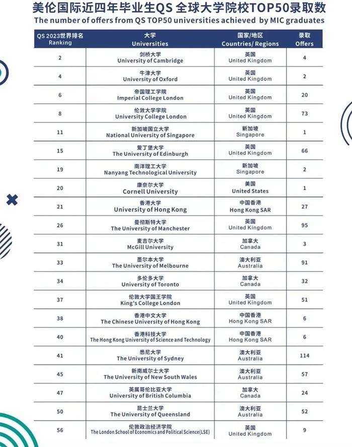 美伦国际作为大湾区黑马国际学校,办学第三年就实现了“牛剑藤校”录取大满贯,连续四届毕业生超90%获世界排名前100大学录取,超80%获得世界前50大学录取,超20%获得世界前10大学录取。