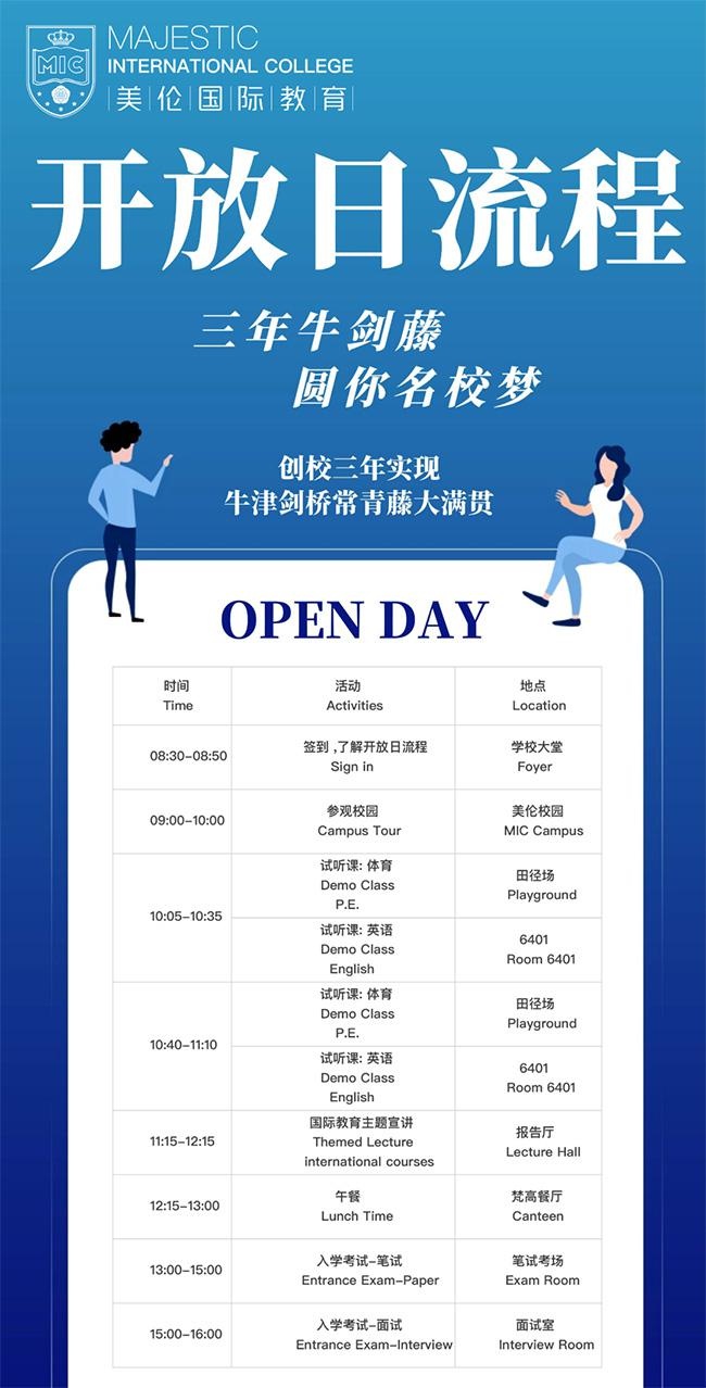 美伦国际教育校园开放日将于6月19日举行,活动流程如下: