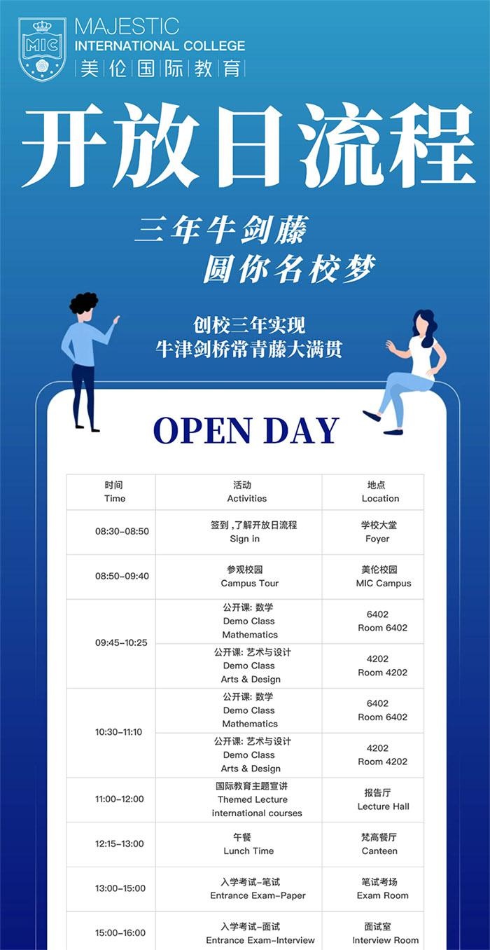 美伦国际教育将于5月3日举行校园开放日,流程安排如下:
