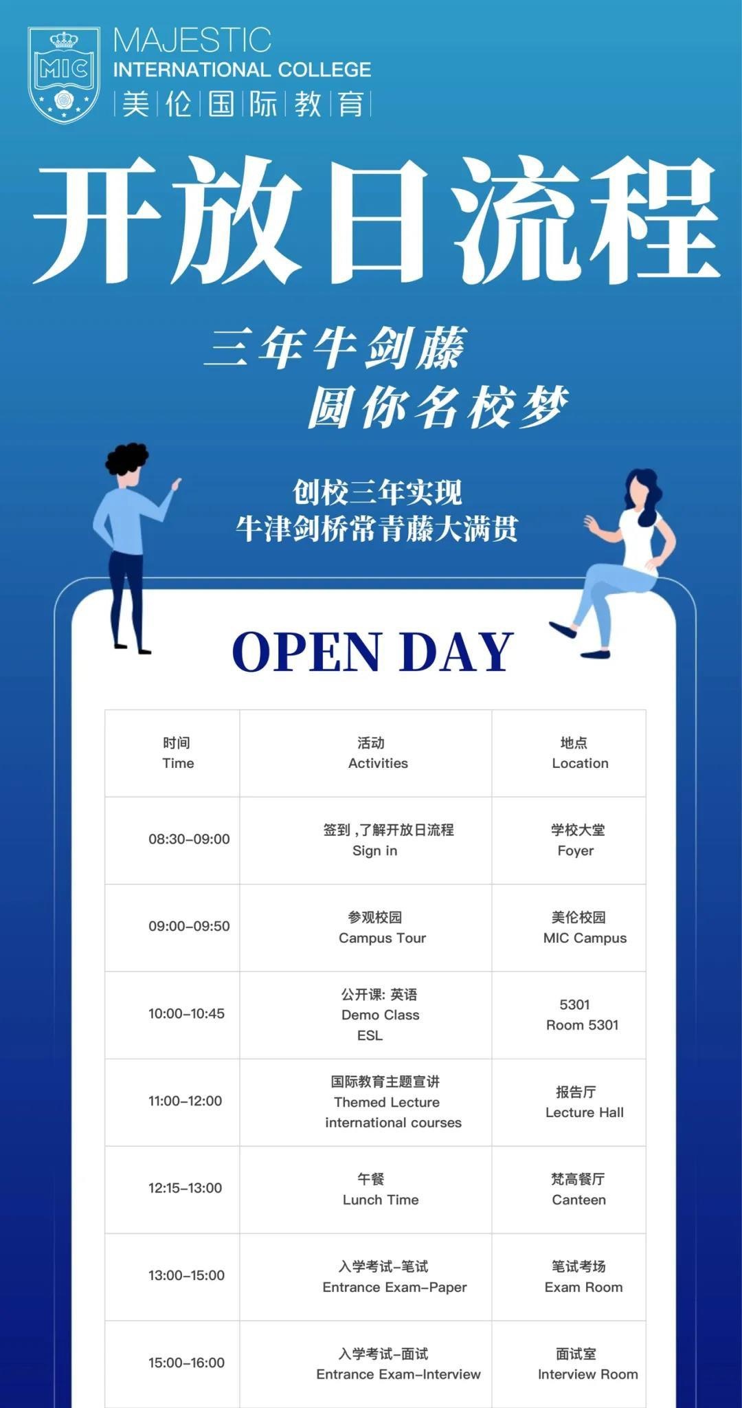 根据最新消息,美伦国际教育校园开放日将于2022年1月2日(周六)举行!各位可以通过点击:美伦国际教育校园开放日,进行提前报名,成功报名后届时将能亲临美伦国际教育校园,与招生老师一对一交流。