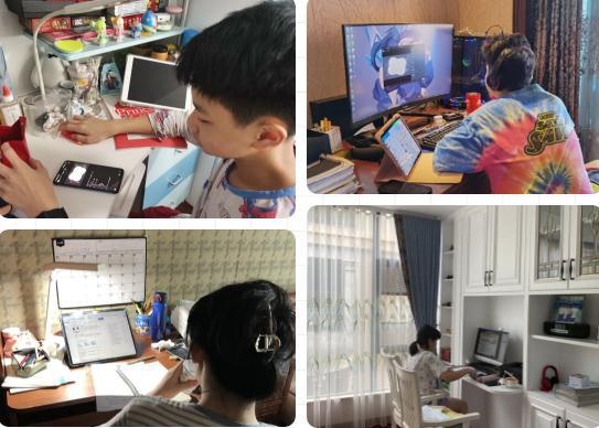 (学生们在家认真上网课,学习不松懈)