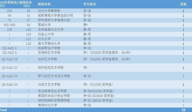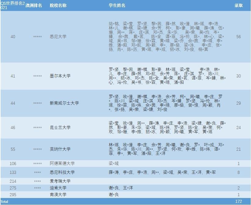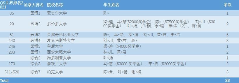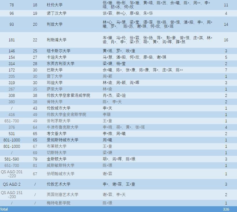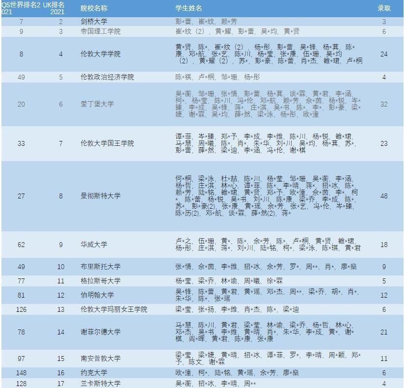 截至2021.05.05,美伦国际教育UK及BC学部2021届毕业生共收到各国预录取577份,其中英国326份,加拿大28份,美国18份,澳洲172份,中国香港地区29份,更多录取仍在路上。依据QS2021全球大学院校排名中,目前MIC 2021届毕业班在读生所获录取中的78%均为世界前100,90%的录取均为世界前200,升学成果卓然。以下为录取名单: