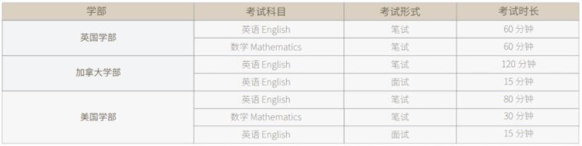 需要注意的是:美伦英国学部和加拿大学部实行制入学考试;美国学部入学考试时间为2021年5月8日和7月3日早上9点,详细入学考试安排如下:
