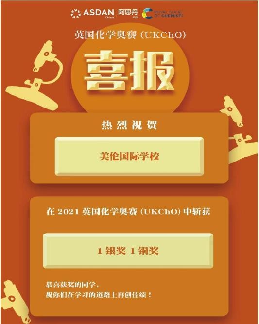 2021年4月下旬,英国化学奥林匹克竞赛(UKChO)成绩出炉,美伦国际教育参赛学子发挥出色,斩获佳绩: