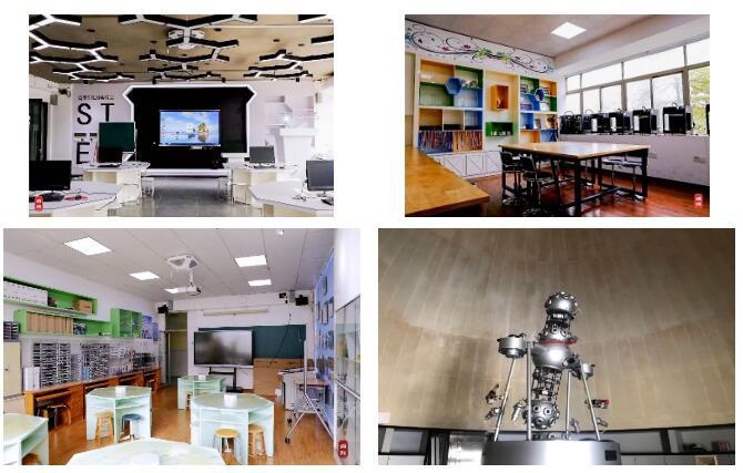 学校建有天台花园、生态体验馆、3D工作室、STEM教育智能室、机器人制作室、模型加工室等12个科学教育功能室或实践场所。