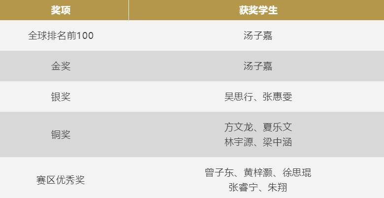 在2022年IEO区域站中,省实AP学子共获1项全国个人总分奖铜奖、7项区域个人优胜奖。
