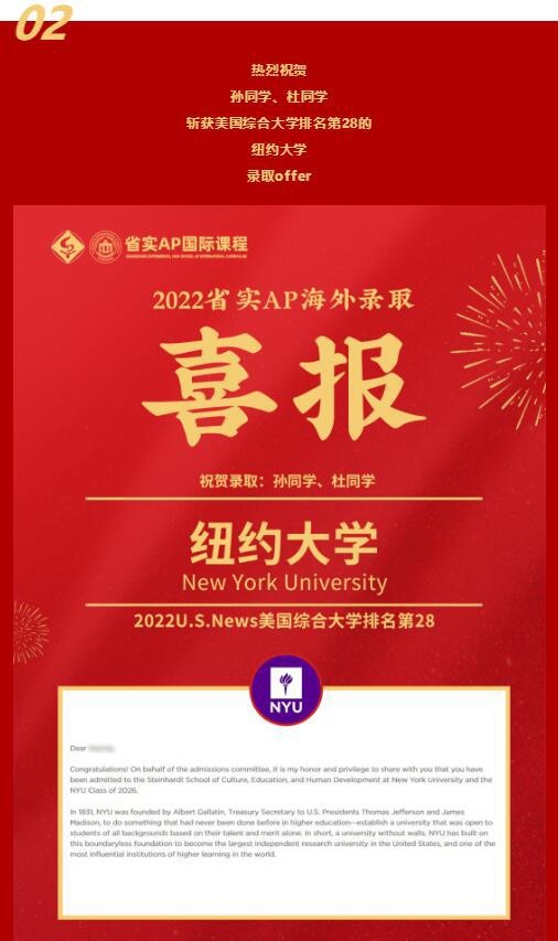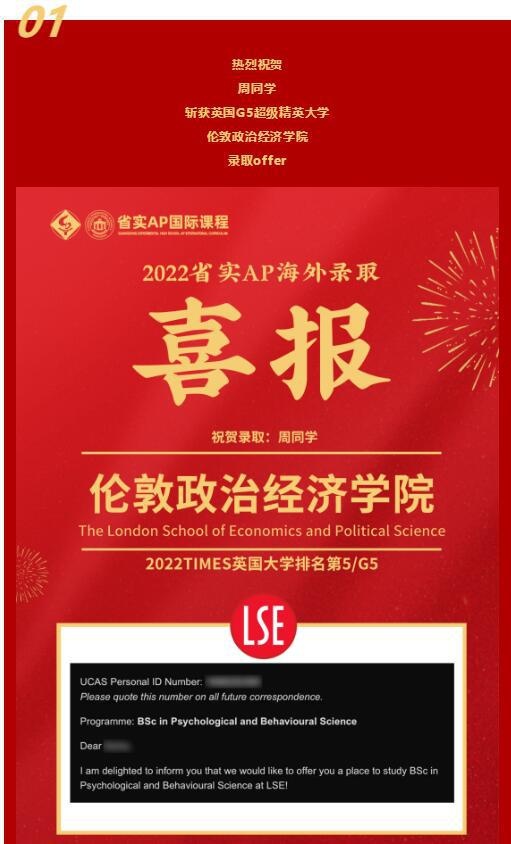 2022申请季进入尾声,仍有不少重磅offer陆续到来。近日,省实AP学子再添2封全美TOP30名校纽约大学录取,在英国方向更是斩获了录取率比牛剑更低的G5名校伦敦政治经济学院录取!