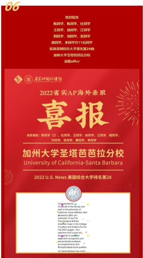 近日,省实AP再添24封全美TOP30重磅录取,其中包括:
