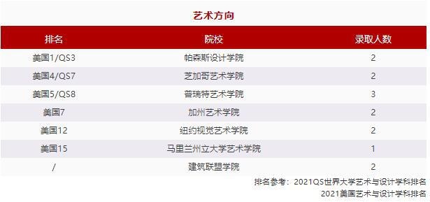 全美TOP1的帕森斯设计学院以及全球TOP10的芝加哥艺术学院、普瑞特艺术学院等世界著名艺术学府纷纷向学子们抛来橄榄枝。