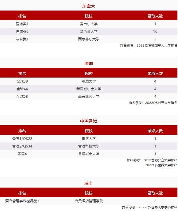 全球录取遍地开花:加拿大TOP1、中国香港TOP1、瑞士酒店管理TOP1……每一封录取都不容小觑!