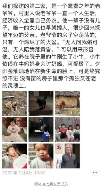 除了CTB项目,在春节期间,何林潼还进行了一次针对乡村留守儿童与老人的走访探望。像以往一样,她热衷于在做公益的过程中观察人间百态,用影像和文字记录着那些给她留下深刻印象的人与事。