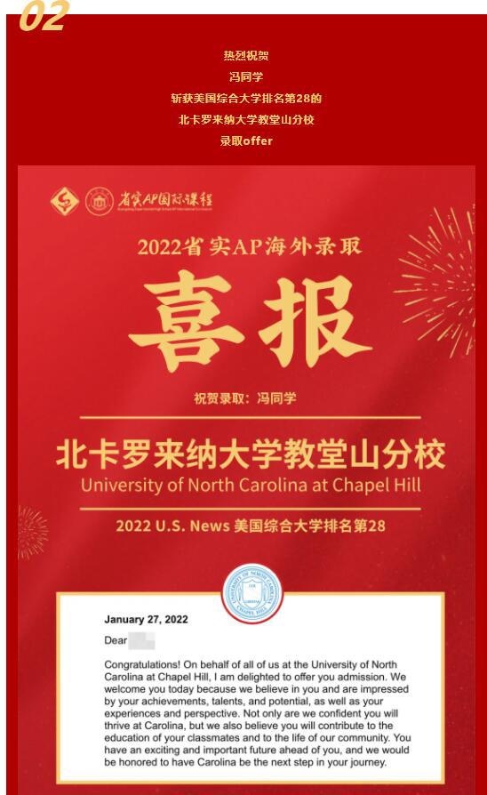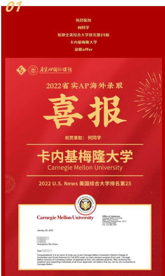 2022年一月底,来自世界各国各地区的名校录取offer依旧纷至沓来,其中包括全美TOP30院校卡内基梅隆大学及北卡罗来纳大学教堂山分校、中国香港以“亚洲常春藤”著称的香港大学、加拿大医博类大学排名第1的麦吉尔大学等名校。