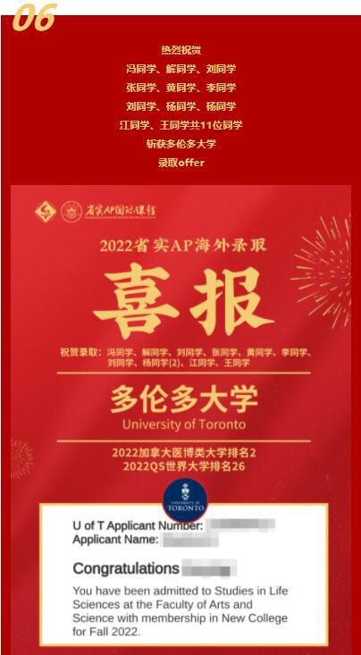 2022录取季正如火如荼地进行中,省实AP学子们最近收获了来自美国、英国、加拿大、澳洲、中国香港等多个国家或地区的名校录取offer,全球录取遍地开花!