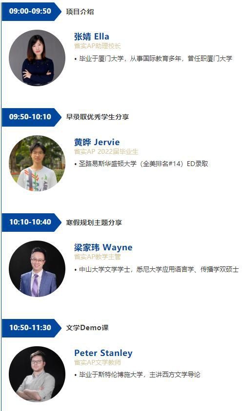 或许您想了解省实AP学子的真实生活,在「早录取优秀学生分享」环节,刚刚收获圣路易斯华盛顿大学ED录取的黄晔同学将从学生视角出发,讲述他在省实AP的成长故事与学习心得。
