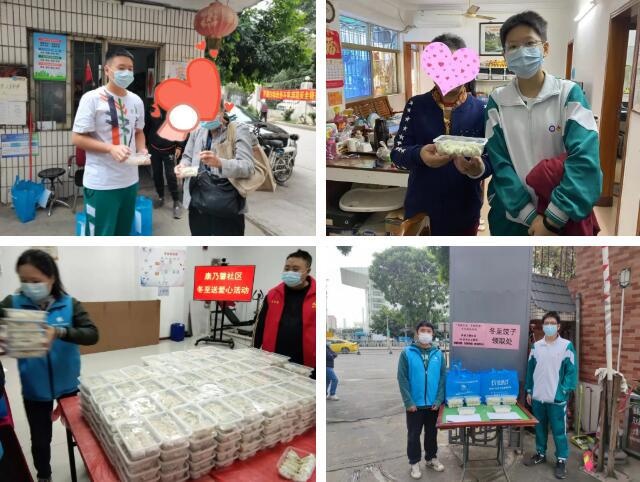 2021年12月19日上午,省实AP学生志愿者与东漖街社工服务站、康乃馨社区居委会合作开展了“情暖冬至,幸福邻里”冬至探访活动,为社区长者送上志愿者亲手制作的爱心饺子,让社区长者感受到社区的关怀与温暖。