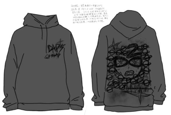 灵感来源于《宇宙之子》。卫衣前身是DAP5&SSAP LOGO并添加了有关宇宙的星系元素。卫衣后主打的是,男孩的头上数字“2”和“8”,并以倒“8”作为眼罩为基础添加创意感。小行星有28个与“2”和“8”相呼应,意为DAP5有28个学生,每个小行星都可视为是独立的个体,独立的思想和个性,一个灵魂即为一个世界。