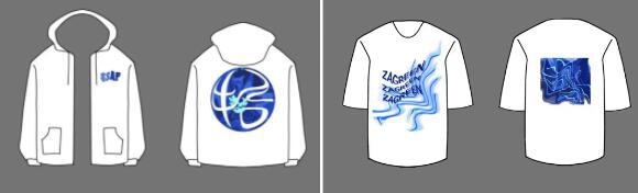 外套:外套正⾯的“SSAP”也采⽤了流动的设计,背⾯的图案由班徽(由镂空的“哲”字与桂花组成)演变⽽来,并添加了⽔流的设计,与短袖的设计相互搭配,浑然⼀体。