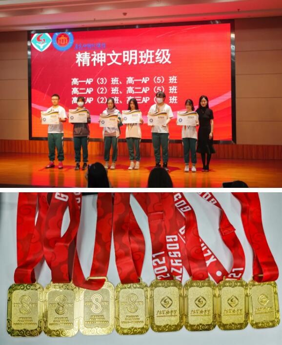 体育节已落幕,但运动赛场上学子们奋力拼搏的身影犹在眼前,一声声振奋人心的呐喊仍在耳边回荡。本次表彰大会集中展示了省实AP学子的优异赛果,为各项评比的获奖班级、精神文明班以及优秀运动员颁奖。