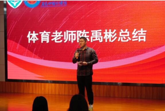 在表彰大会的尾声,体育老师陈禹斌作总结发言。陈老师引用“文明其精神,野蛮其体魄”鼓励同学们重视体育运动、增强自身体质,在今后的学习生活中继续发扬团结向上、奋勇拼搏的体育精神!