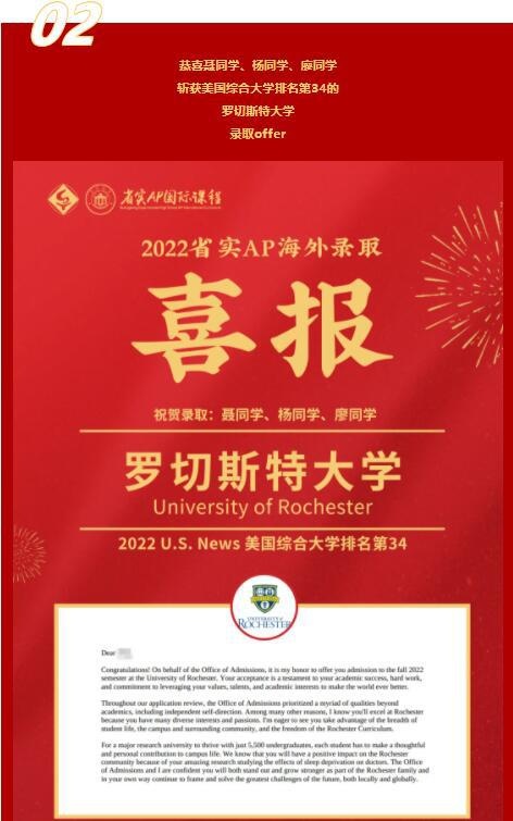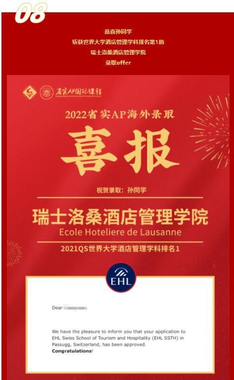 截至12月14日,2022届省实AP学子已收获来自美国、英国、瑞士等国家的多封世界名校重磅录取,其中包括: