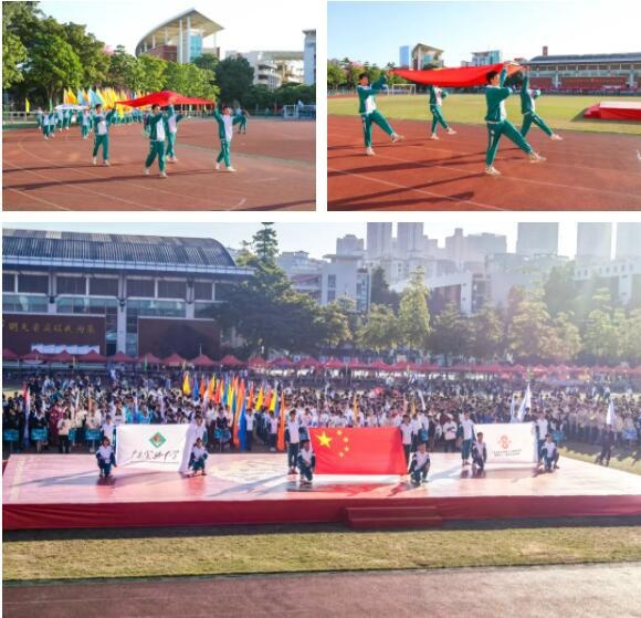 秋风习习,庄重而激昂的进行曲响彻清晨的校园。“中国红”在阳光下闪耀,护旗手们步履铿锵,气宇轩昂。