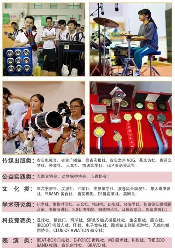 这三大成绩辉煌、蜚声中外的特色教育品牌。帮助每一位学生激发潜能、成就自我,做到“人人有一门艺术特长,有一种科技兴趣,有一项体育爱好”,更需要全方位培养以及多元化的发展途径。省实AP为学生提供三种不同层次的资源支持。