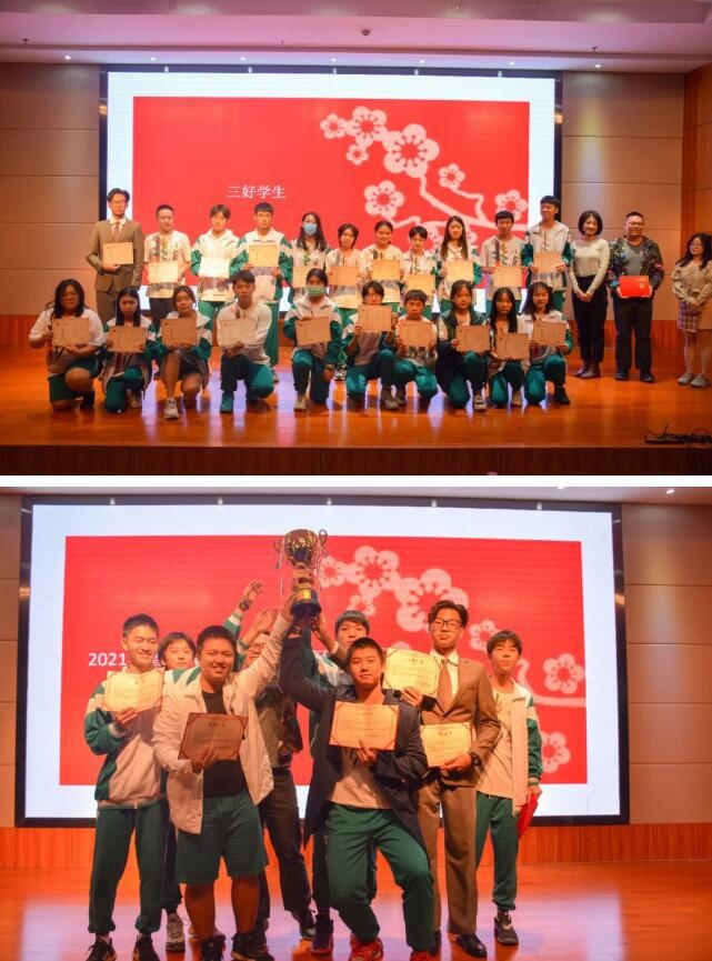 在晚会尾声进行了表彰环节,省实AP杜虹副校长宣读了获得“核心素养之星”“三好学生”“三好学生标兵”“2021年省实AP篮球锦标赛冠军”“荣誉班级”等奖项的个人及班集体,并鼓励同学们向榜样学习,向优秀看齐!