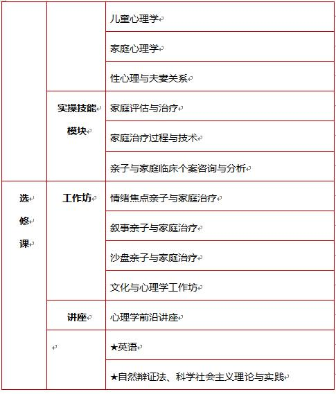 深圳大学在职研究生亲子关系与家庭治疗方向课程设置分必修课和选修课。