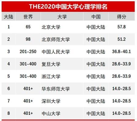本学科在2019年软科中国学科排名中位列全国第9,在2020年泰晤士心理学科排名榜中进入中国内地前7所学校,被誉为中国心理学界的深圳速度。