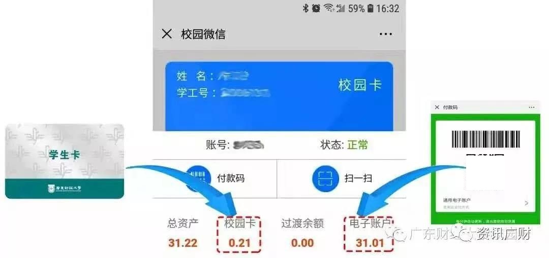 ③充值到卡账户后会先显示进入过渡余额,需要在校内POS机刷一下或在圈存机领取补助才能进入卡账户。