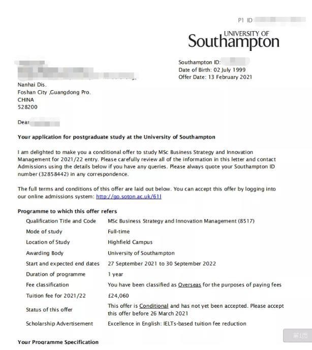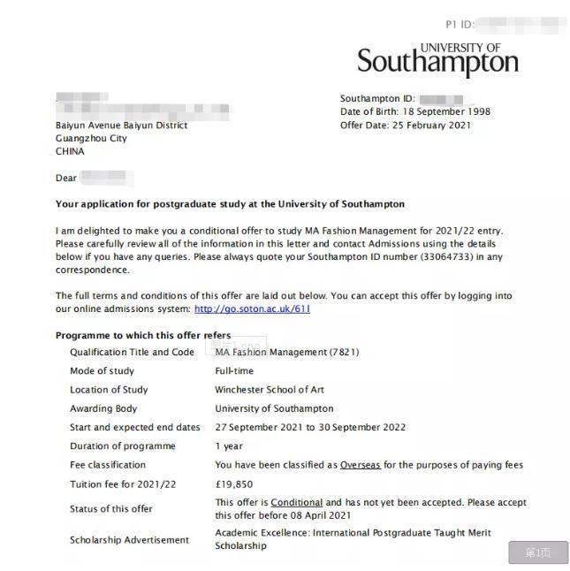 陈*昕 英国南安普顿大学(QS90) 时尚管理硕士