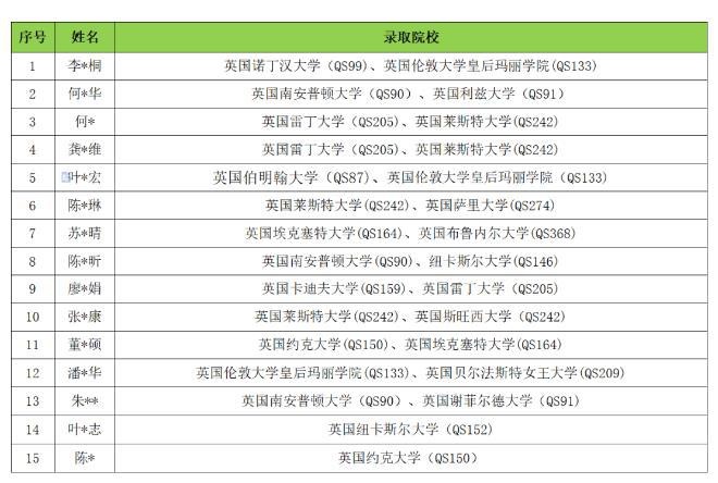 下面给大家展示部分2020届毕业生的申硕录取情况