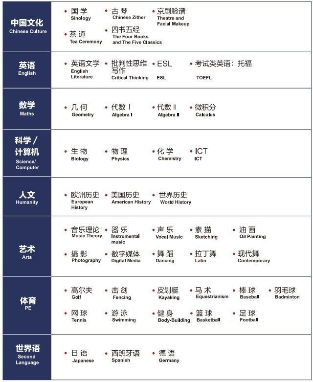 美华学校UIA坐落于有着“东方日内瓦湖“之美誉的淀山湖风景区,绿化覆盖面高达75%, 空气质量指数PM2.5仅为6.0,拥有自己的游艇码头,整个校区建设几乎还原了美国布朗附中精英培养模式的教学环境。以下是美华学校UIA美高课程设置。