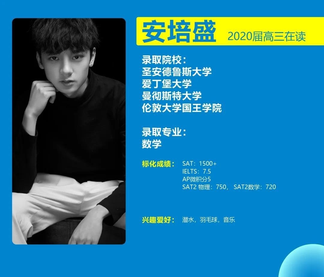 在成都七中国际部,不少学生因为清晰的自我规划,日复一日的自律,卓越的软硬实力而获得世界名校的青睐。除了学业之外,他们的兴趣爱好也一样没有落下。录取不仅仅是高中3年努力的结果,也是对优秀的综合素质的肯定。今年的毕业生中,有一位同学同时收获了仅次于牛津、剑桥的“古老大学”——圣安德鲁斯大学(2020TIMES英国排名第3位)、爱丁堡大学(2020QS世界大学排名第20位)、曼彻斯特大学(红砖大学、罗素大学集团成员)、伦敦大学国王学院录取,他就是安培盛,本期【毕业季】,他将和大家分享自己就读国际部的感受,并结合自己的经验给学弟学妹中肯的建议。