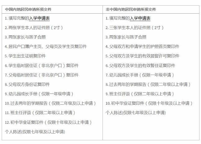 诺德安达学校要求学生入学前提交如下申请材料