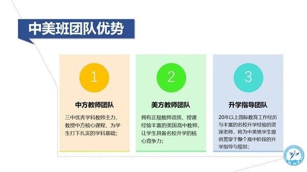规划指导团队:20年以上国际教育工作经历与丰富的规划经验的老师,将为中美班学生提供贯穿于整个高中阶段的规划指导与规划;