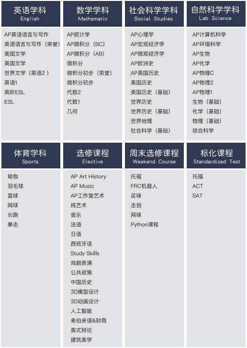 采用美国加州大学伯克利分校牵头研发的“A-G学分”课程体系,与美国各州本土高中互通学分。